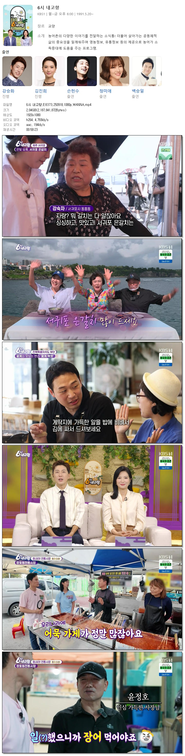 [KBS1] 6시 내고향.E8373.250918.1080p.WANNA[강승화, 김진희] 다시보기 토렌트