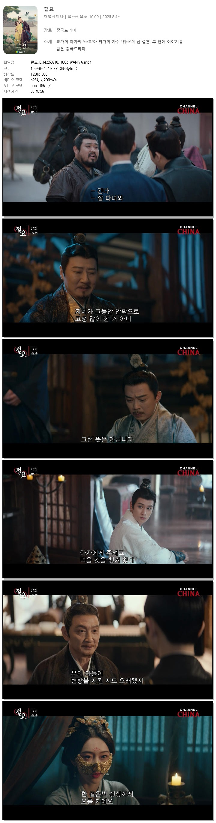 [채널차이나] 절요.E34.250918.1080p.WANNA[송조아, 류우녕] 다시보기 토렌트
