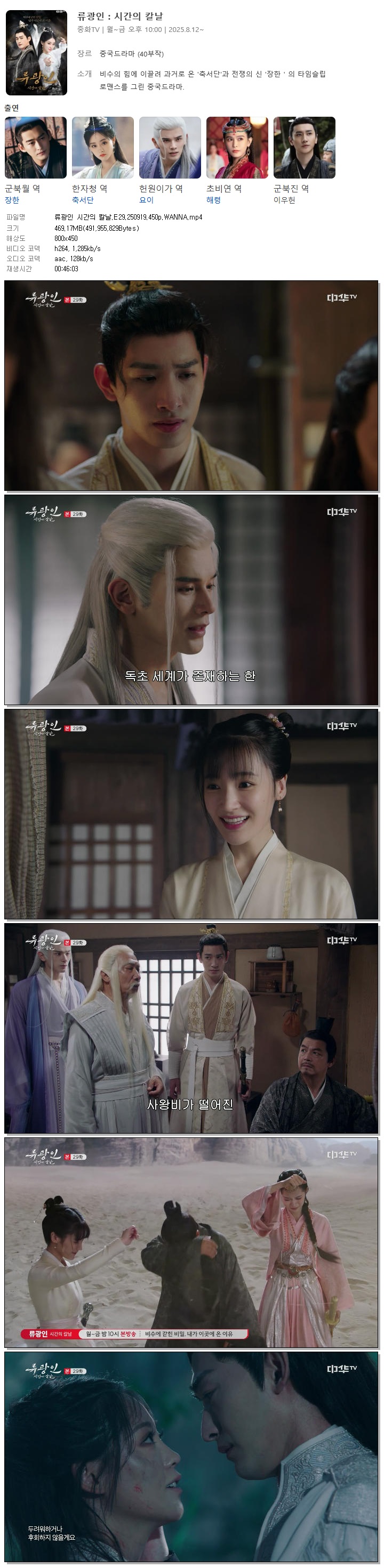 [중화TV] 류광인 시간의 칼날.E29.250919.450p.WANNA[군북월, 한자청].mp4 469.2 M 00:46:03 800x450