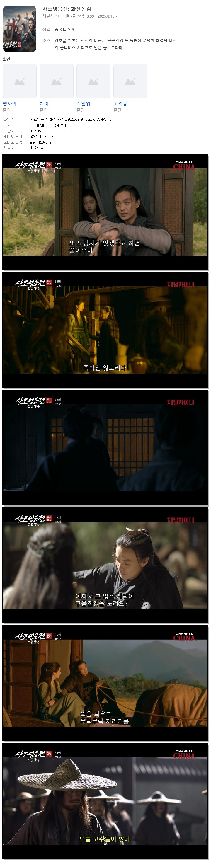 [채널차이나] 사조영웅전 화산논검.E25.250919.450p.WANNA[맹자의, 하여] 다시보기 토렌트