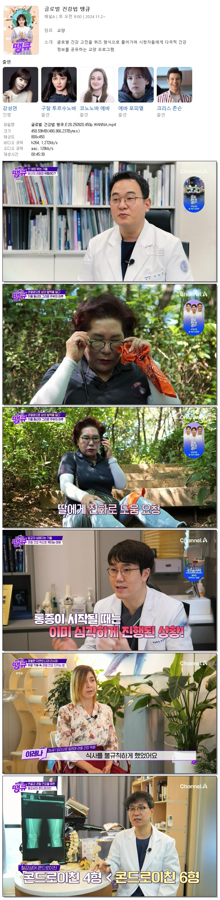 | [채널A] 글로벌 건강법 땡큐.E28.250920.450p.WANNA.mp4 | 458.6 M | 00:45:30 | 800x450 |