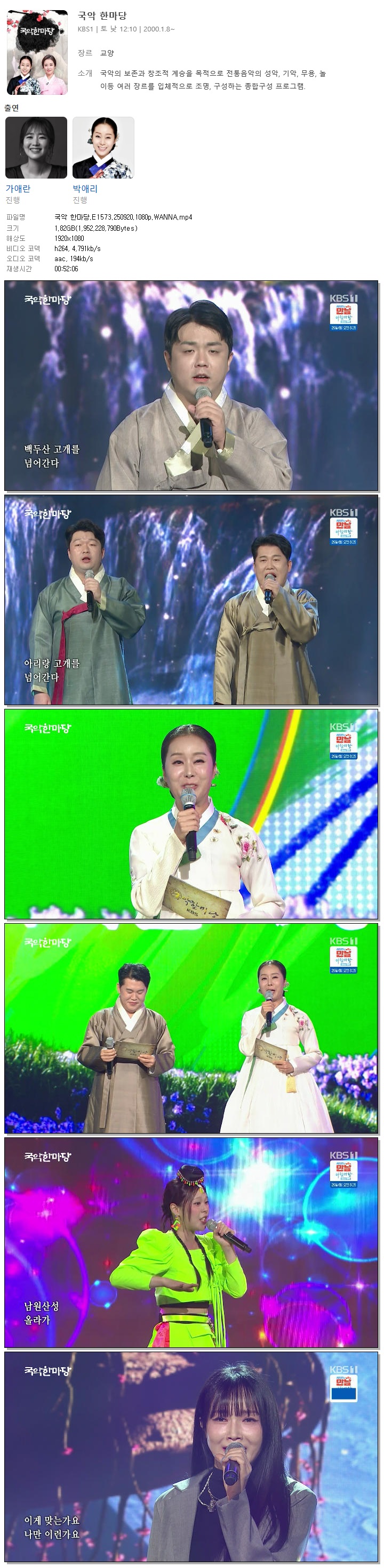 [KBS1] 국악 한마당.E1573.250920.1080p.WANNA[박애리].mp4 1.8 G 00:52:06 1920x1080