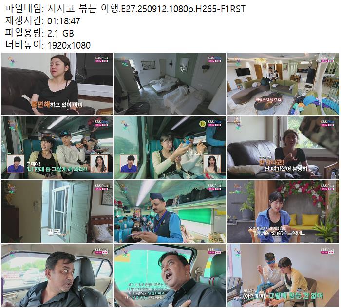 | 지지고 볶는 여행.E27.250912.1080p.H265-F1RST.mp4 | 2.1 G | - | 1920x1080 |