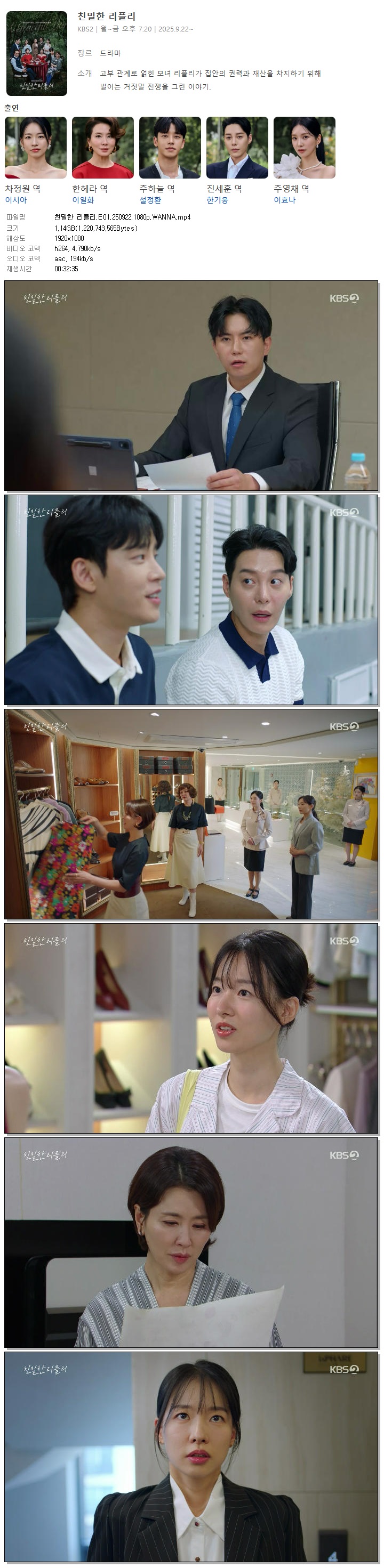 [KBS2] 친밀한 리플리.E01.250922.1080p.WANNA[이시아, 이일화]