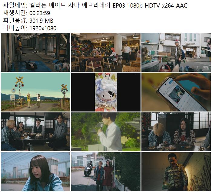 | 킬러는 메이드 사마 에브리데이 EP03 1080p HDTV x264 AAC.mkv | 901.9 M | 00:23:59 | 1920x1080 |