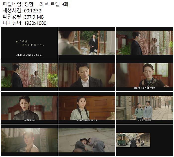 | 정함 _ 러브 트랩 9화.mp4 | 367 M | 00:12:32 | 1920x1080 |