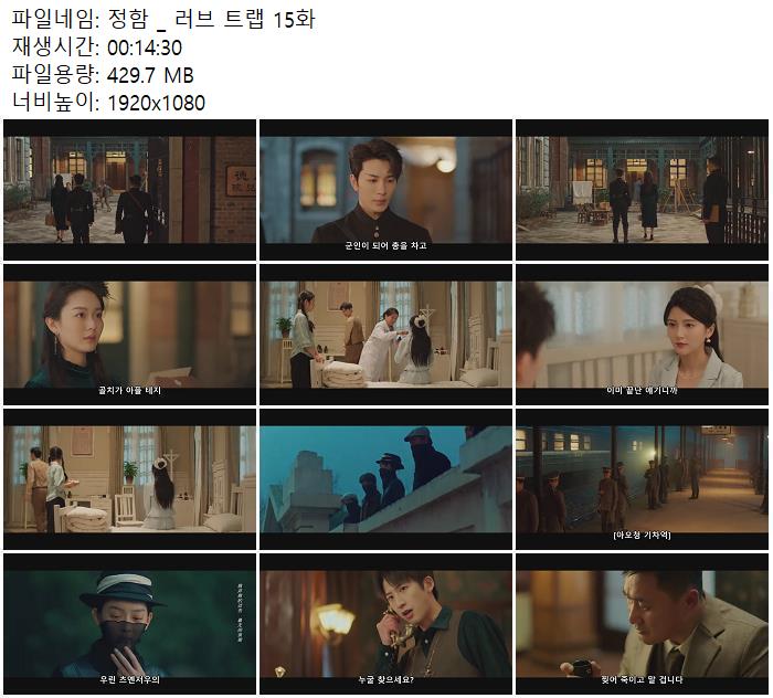 | 정함 _ 러브 트랩 15화.mp4 | 429.7 M | 00:14:30 | 1920x1080 |