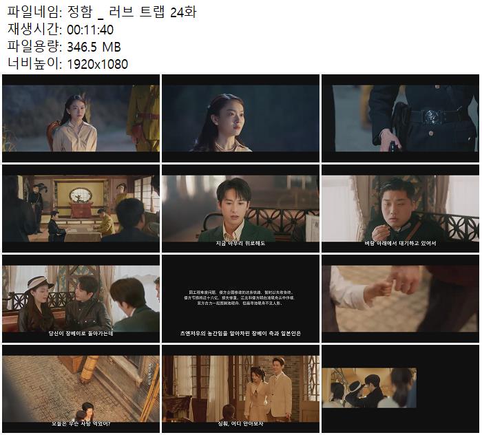 | 정함 _ 러브 트랩 24화.mp4 | 346.5 M | 00:11:40 | 1920x1080 |