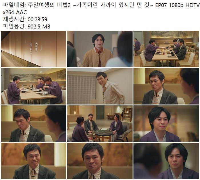 | 주말여행의 비법2 ~가족이란 가까이 있지만 먼 것~ EP07 1080p HDTV x264 AAC.mkv | 902.5 M | 00:23:59 | 1920x1080 |