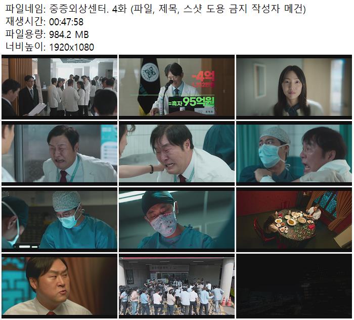 | 중증외상센터. 4화 (파일, 제목, 스샷 도용 금지!! 작성자 메건).mkv | 984.2 M | 00:47:58 | 1920x1080 |