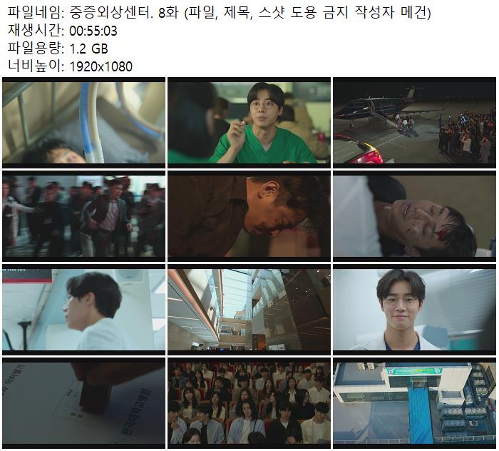 | 중증외상센터. 8화 (파일, 제목, 스샷 도용 금지!! 작성자 메건).mkv | 1.2 G | 00:55:03 | 1920x1080 |