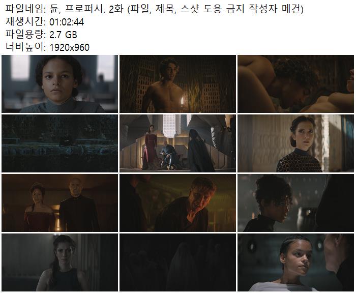 | 듄, 프로퍼시. 2화 (파일, 제목, 스샷 도용 금지!! 작성자 메건).mkv | 2.7 G | 01:02:44 | 1920x960 |
