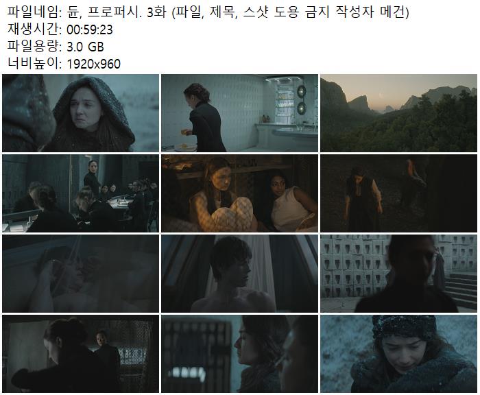 듄, 프로퍼시. 3화 (파일, 제목, 스샷 도용 금지!! 작성자 메건).mkv 3 G 00:59:23 1920x960