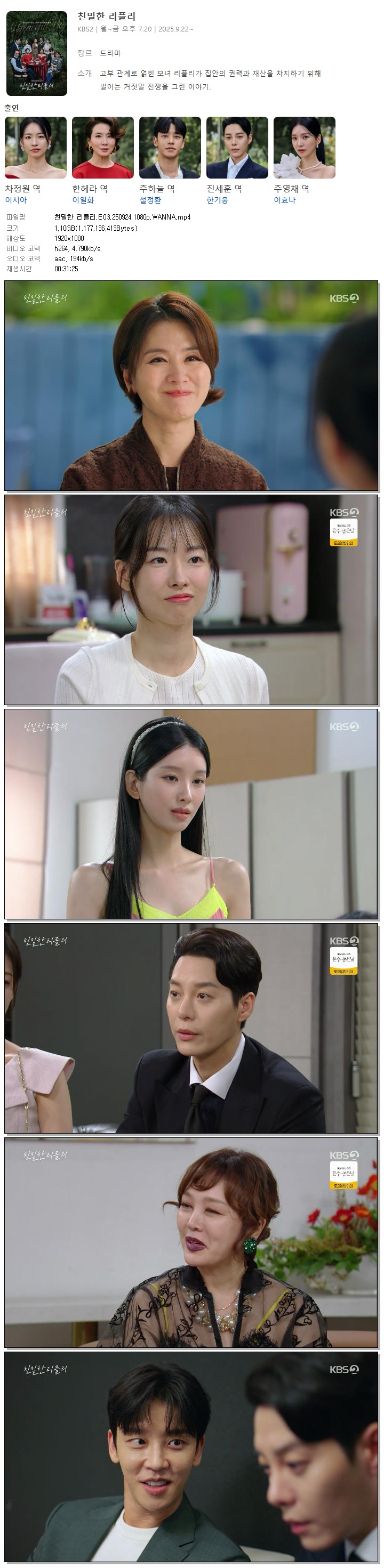 [KBS2] 친밀한 리플리.E03.250924.1080p.WANNA[이시아, 이일화] 다시보기 토렌트