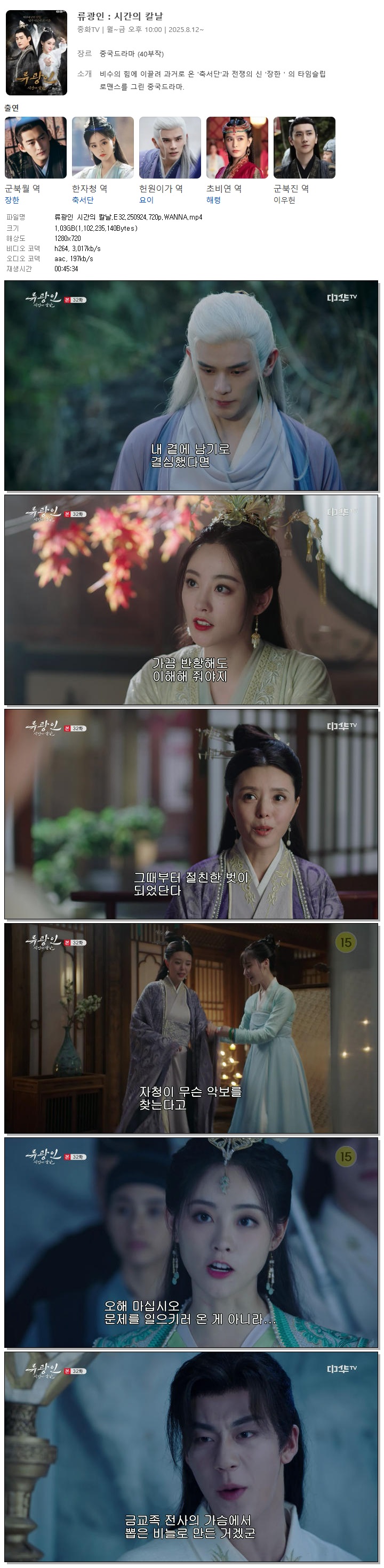 [중화TV] 류광인 시간의 칼날.E32.250924.720p.WANNA[군북월, 한자청].mp4 1 G 00:45:34 1280x720