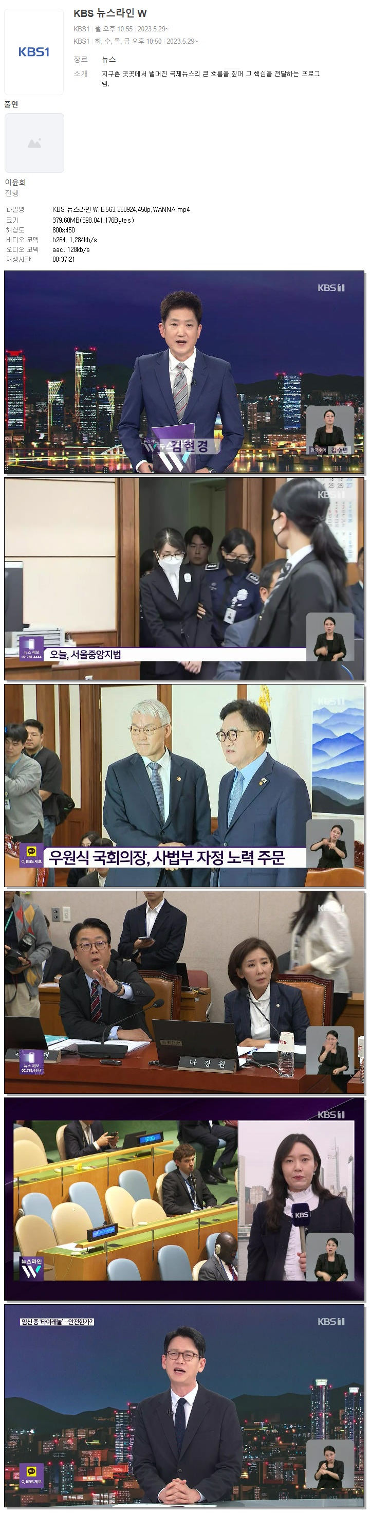 | [KBS1] KBS 뉴스라인W.E563.250924.450p.WANNA.mp4 | 379.6 M | 00:37:21 | 800x450 |
