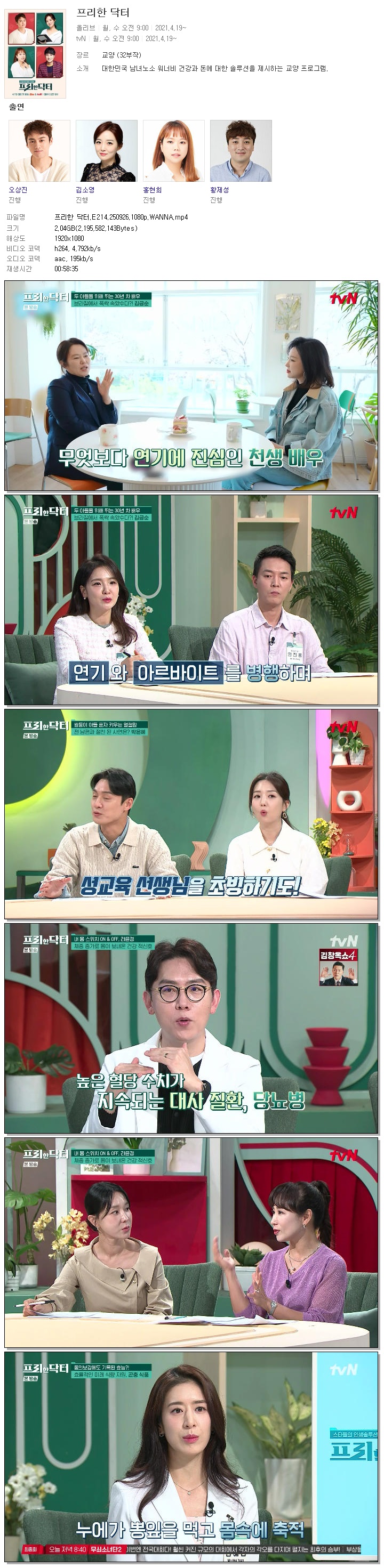 [TVN] 프리한 닥터.E214.250926.1080p.WANNA[오상진, 김소영].mp4 2 G 00:58:35 1920x1080