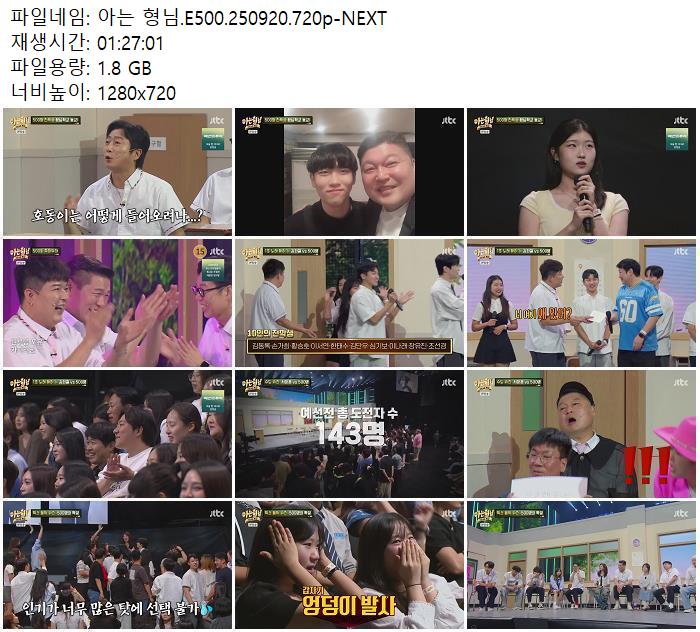 | 아는 형님.E500.250920.720p-NEXT.mp4 | 1.8 G | - | 1280x720 |