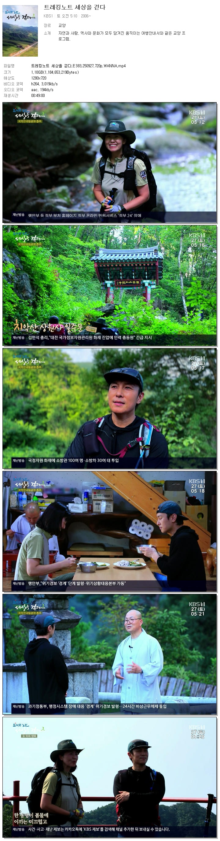 [KBS1] 트레킹노트 세상을 걷다.E383.250927.720p.WANNA.mp4 1.1 G 00:49:00 1280x720