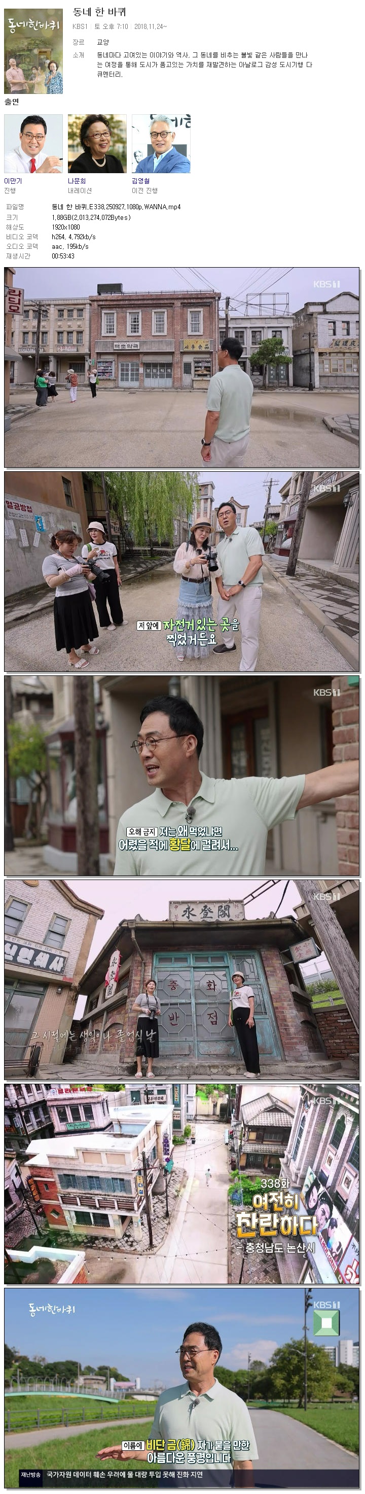 [KBS1] 동네 한 바퀴.E338.250927.1080p.WANNA[이만기] 다시보기 토렌트
