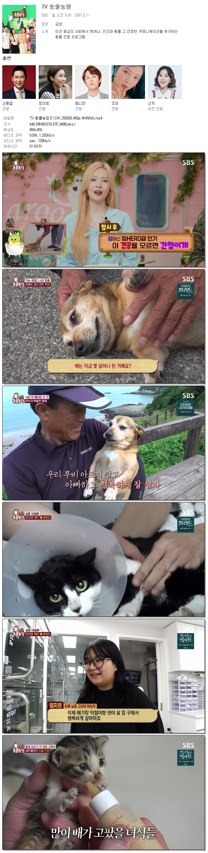 | [SBS] TV 동물농장.E1241.250928.450p.WANNA[신동엽, 정선희].mp4 | 648.1 M | 01:03:51 | 800x450 |