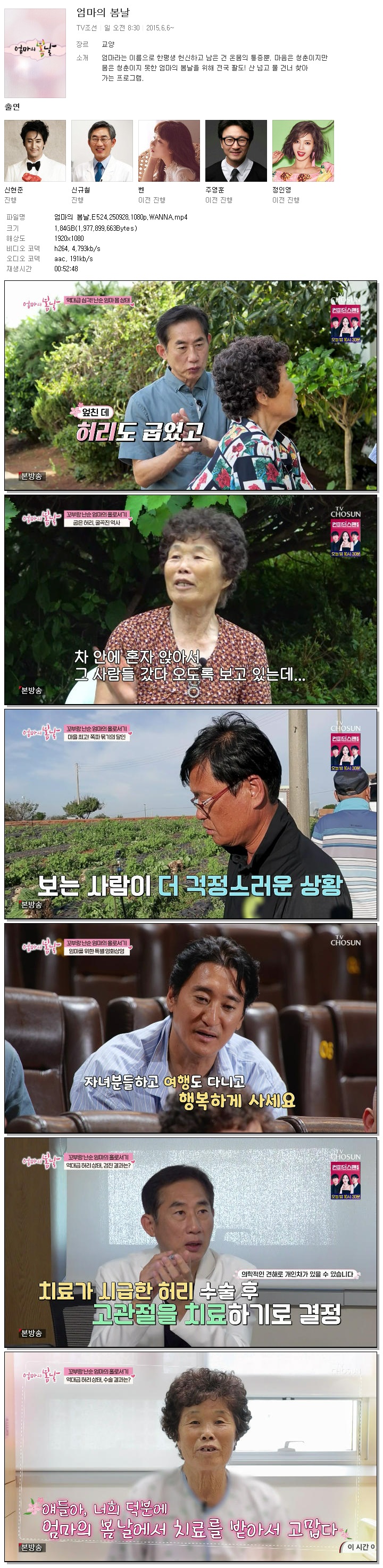 | [TV조선] 엄마의 봄날.E524.250928.1080p.WANNA.mp4 | 1.8 G | 00:52:48 | 1920x1080 |