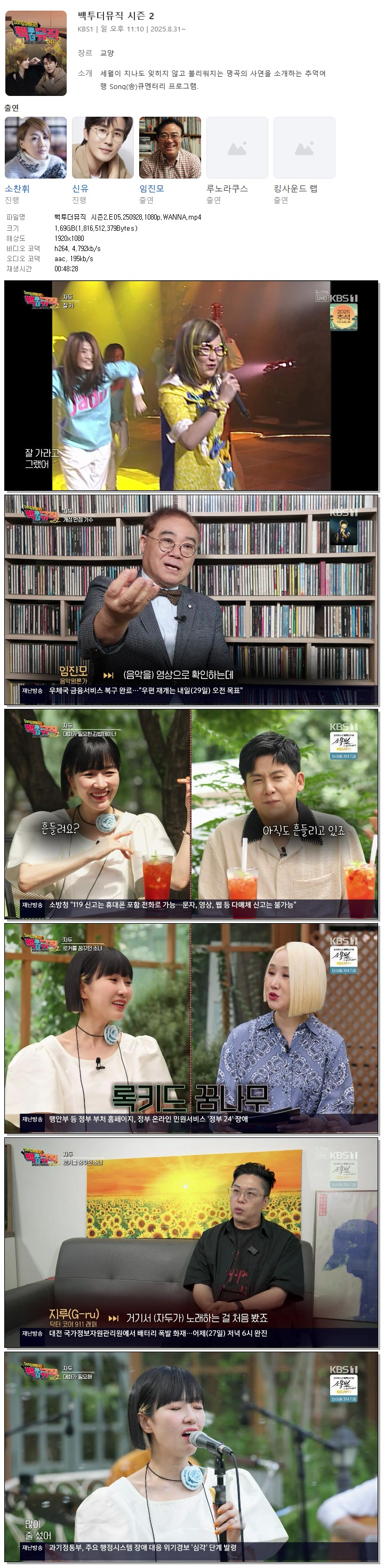 [KBS1] 백투더뮤직 시즌2.E05.250928.1080p.WANNA[자두].mp4 1.7 G 00:48:28 1920x1080