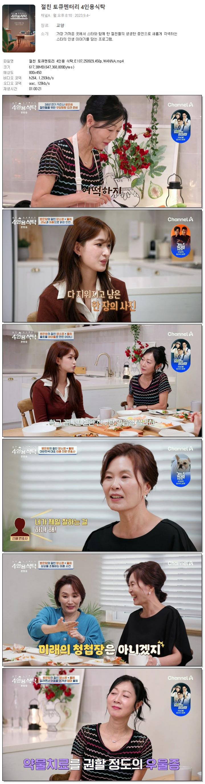 | [채널A] 절친 토큐멘토리 4인용 식탁.E107.250929.450p.WANNA[방은희, 율희].mp4 | 617.4 M | 01:00:21 | 800x450 |