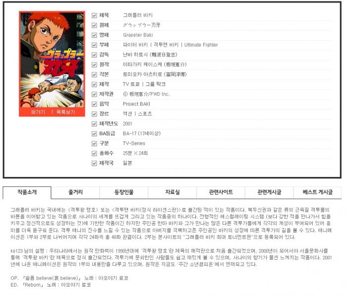 격투왕 바키 1~47화 완결 우리말 더빙판 다시보기 토렌트