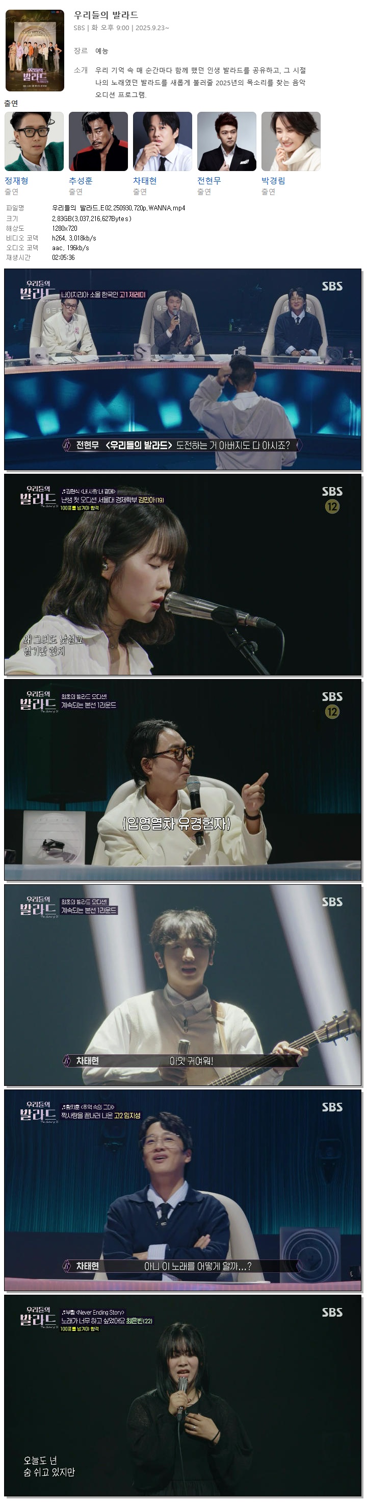 [SBS] 우리들의 발라드.E02.250930.720p.WANNA[크러쉬, 차태현] 다시보기 토렌트