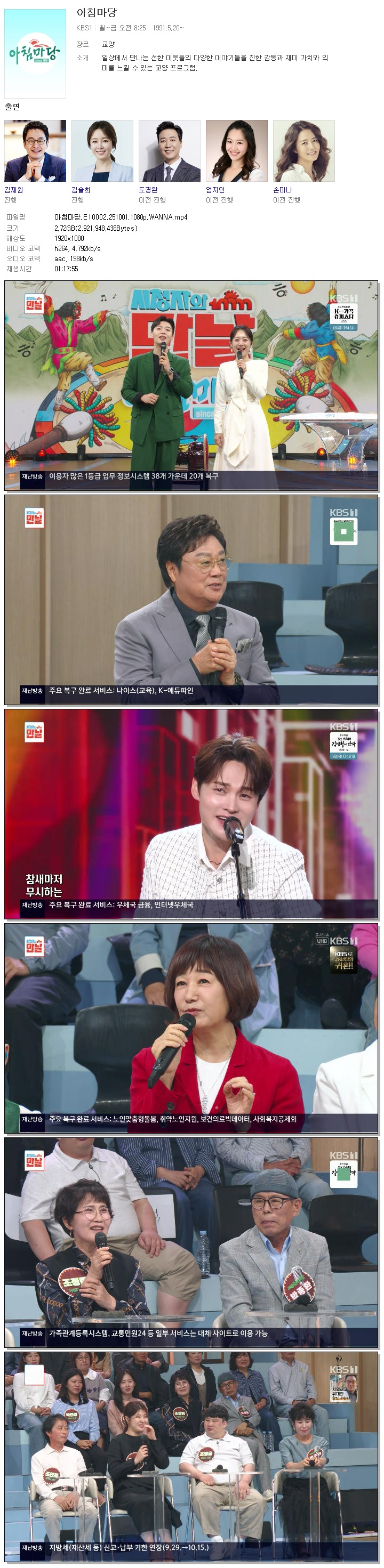 [KBS1] 아침마당.E10002.251001.1080p.WANNA[김재원, 엄지인].mp4 2.7 G 01:17:55 1920x1080