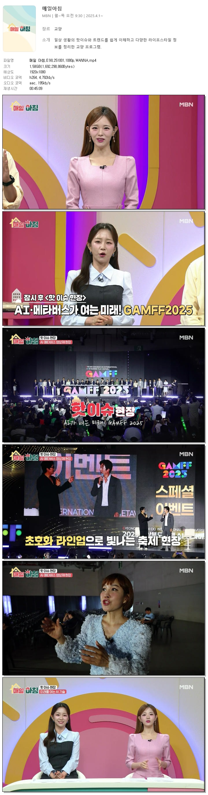 [MBN] 매일 아침.E98.251001.1080p.WANNA[한혜원, 이정수] 다시보기 토렌트