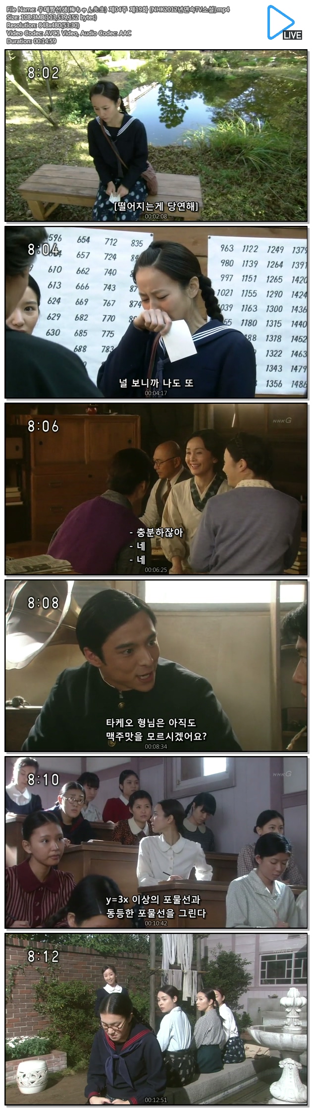 | 우메짱선생(梅ちゃん先生) 제04주 제19화 [NHK2012년연속TV소설].mp4 | 108.3 M | 00:14:59 | 480p |