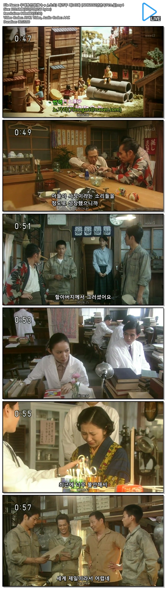 | 우메짱선생(梅ちゃん先生) 제25주 제147화 [NHK2012년연속TV소설].mp4 | 81.6 M | 00:14:59 | 480p |
