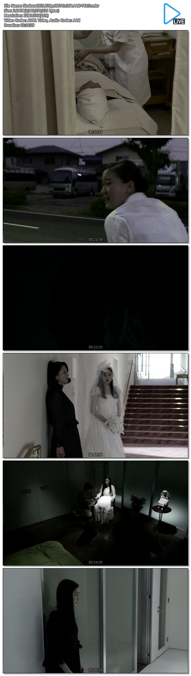 | Shokuzai.E02.720p.HDTV.x264.AAC-YYeTs.mkv | 1.5 G | 00:50:59 | 1280x720 |