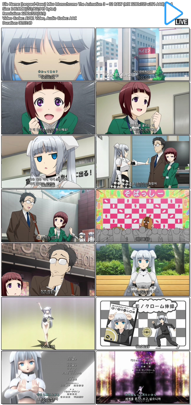 | [Leopard-Raws] Miss Monochrome The Animation 3 - 02 RAW (MX 1280x720 x264 AAC).mp4 | 146.8 M | 00:07:49 | 720p |