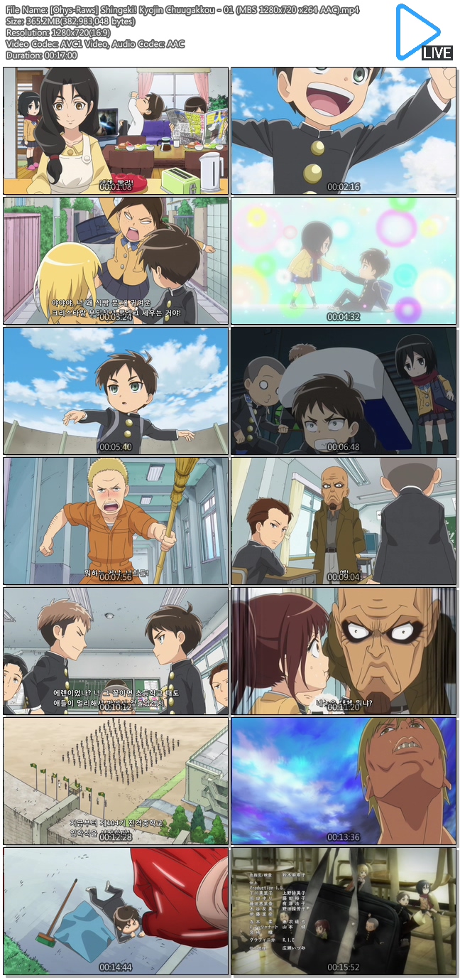 [Ohys-Raws] Shingeki! Kyojin Chuugakkou - 01 (MBS 1280x720 x264 AAC).mp4 365.2 M 00:17:00 720p