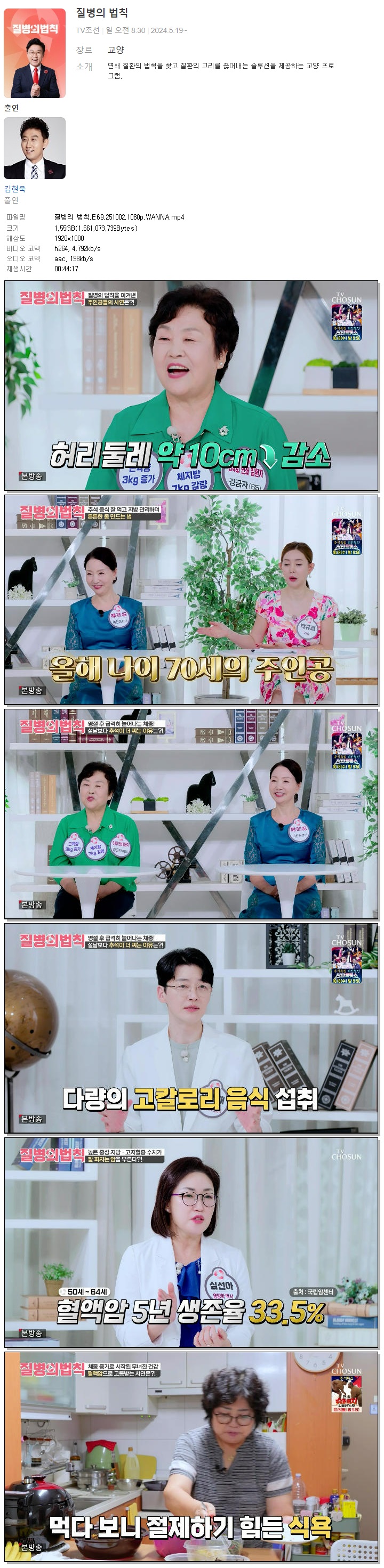 | [TV조선] 질병의 법칙.E69.251002.1080p.WANNA[김현욱].mp4 | 1.5 G | 00:44:17 | 1920x1080 |