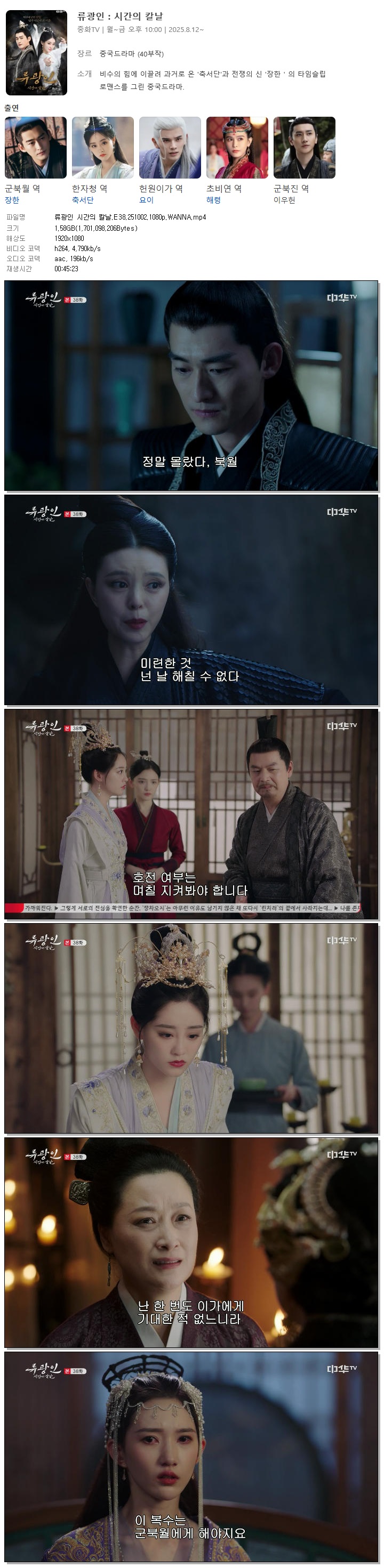 [중화TV] 류광인 시간의 칼날.E38.251002.1080p.WANNA[군북월, 한자청].mp4 1.6 G 00:45:23 1920x1080