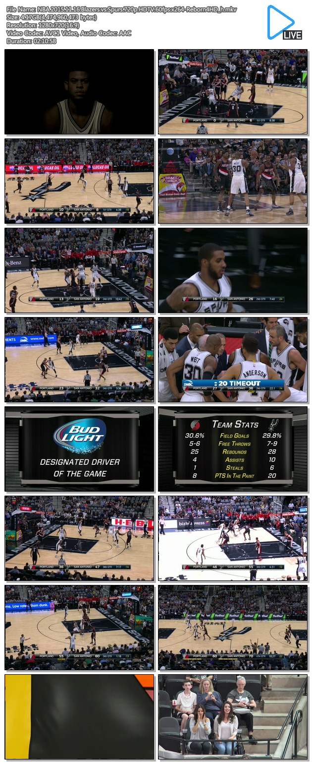| NBA.2015.11.16.Blazers.vs.Spurs.720p.HDTV.60fps.x264-Reborn4HD_h.mkv | 4.2 G | 02:10:58 | 1280x720 |