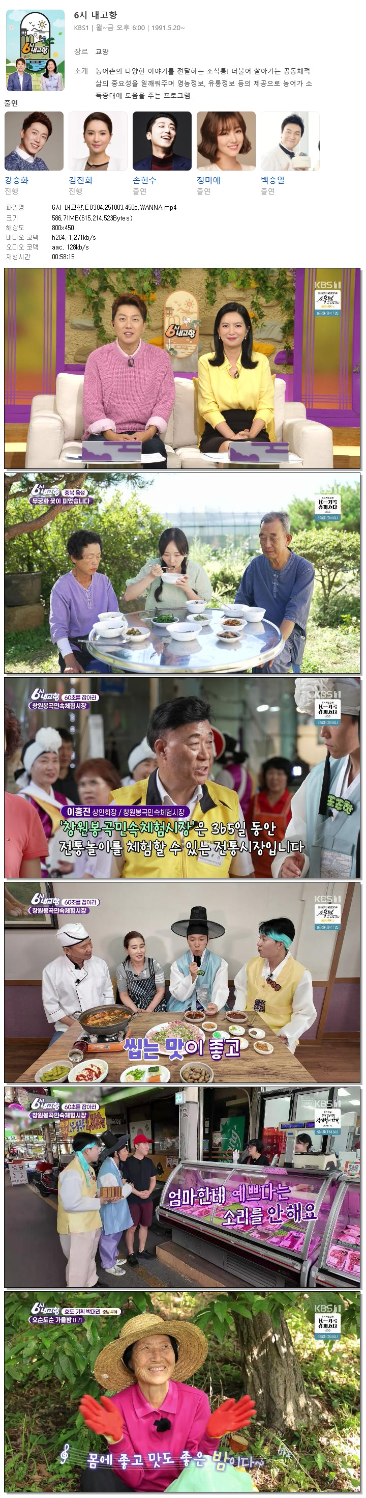 | [KBS1] 6시 내고향.E8384.251003.450p.WANNA[강승화, 김진희].mp4 | 586.7 M | 00:58:15 | 800x450 |