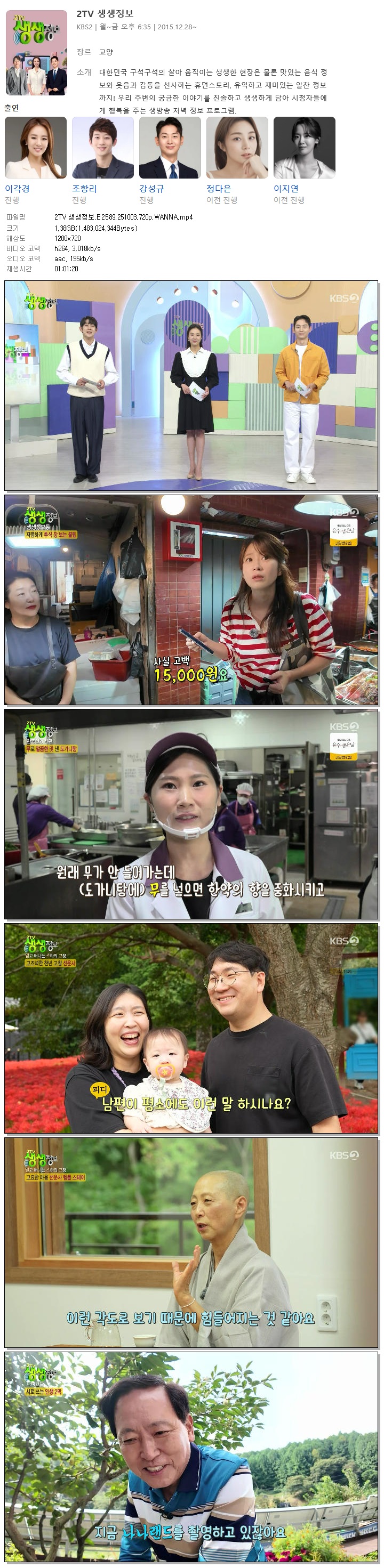 [KBS2] 2TV 생생정보.E2589.251003.720p.WANNA[이각경, 조항리].mp4 1.4 G 01:01:20 1280x720