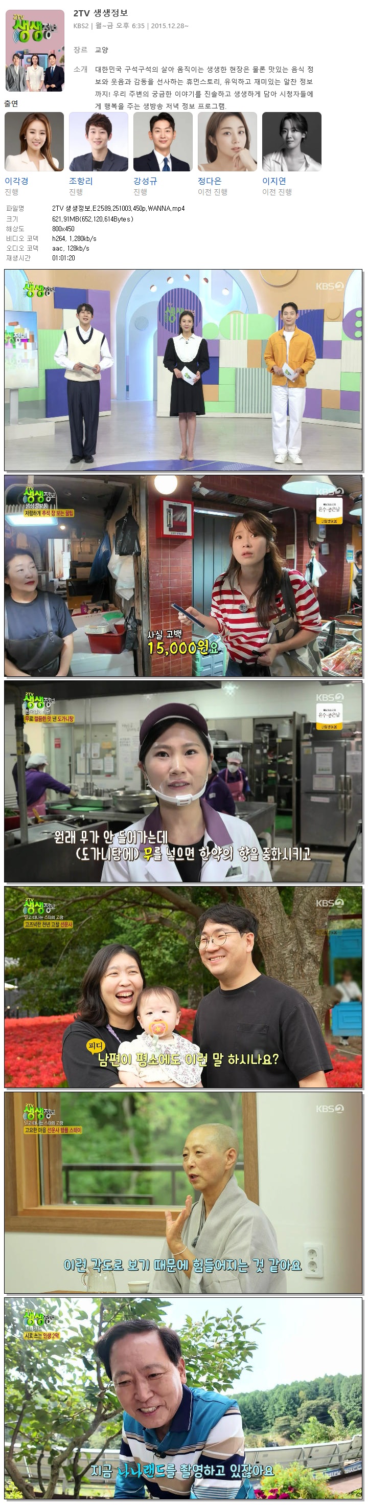 [KBS2] 2TV 생생정보.E2589.251003.450p.WANNA[이각경, 조항리].mp4 621.9 M 01:01:20 800x450