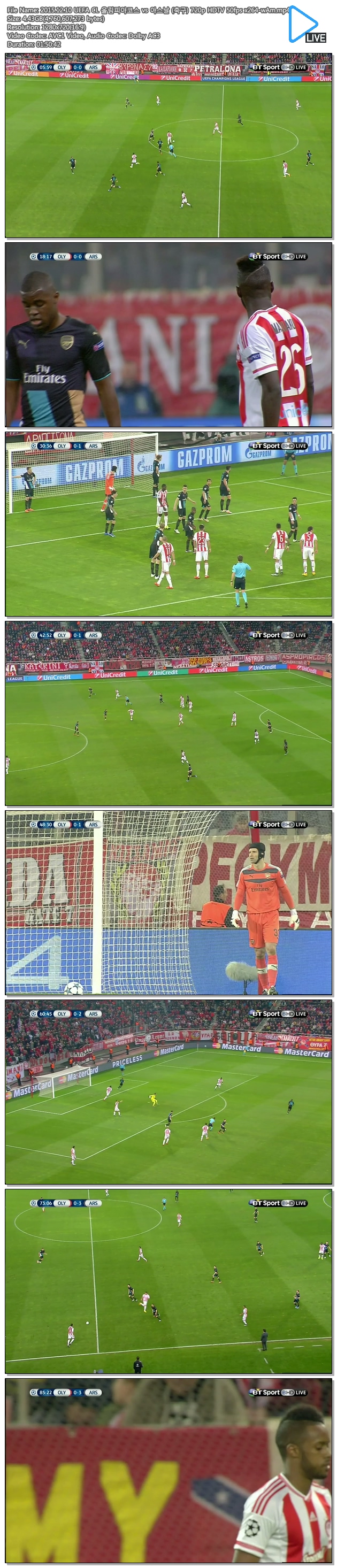 2015.12.10 UEFA CL 올림피아코스 vs 아스날 (축구) 720p HDTV 50fps x264-wAm.mp4 4.4 G 01:50:42 1280x720