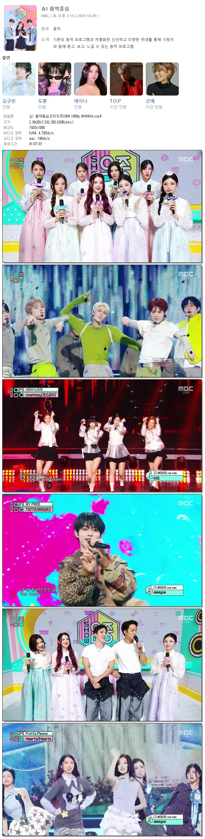 [MBC] 쇼! 음악중심.E919.251004.1080p.WANNA[izna, 윤서빈].mp4 2.4 G 01:07:33 1920x1080