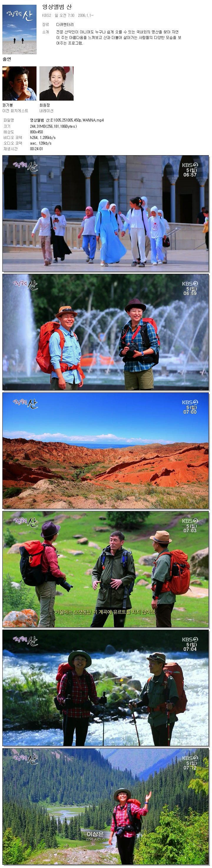 [KBS2] 영상앨범 산.E1005.251005.450p.WANNA.mp4 244.3 M 00:24:01 800x450