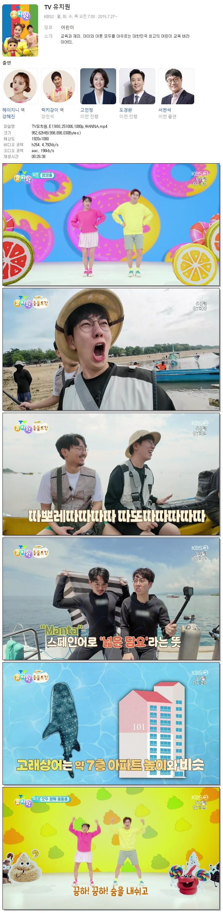 | [KBS2] TV유치원.E1980.251006.1080p.WANNA.mp4 | 952.6 M | 00:26:38 | 1920x1080 |