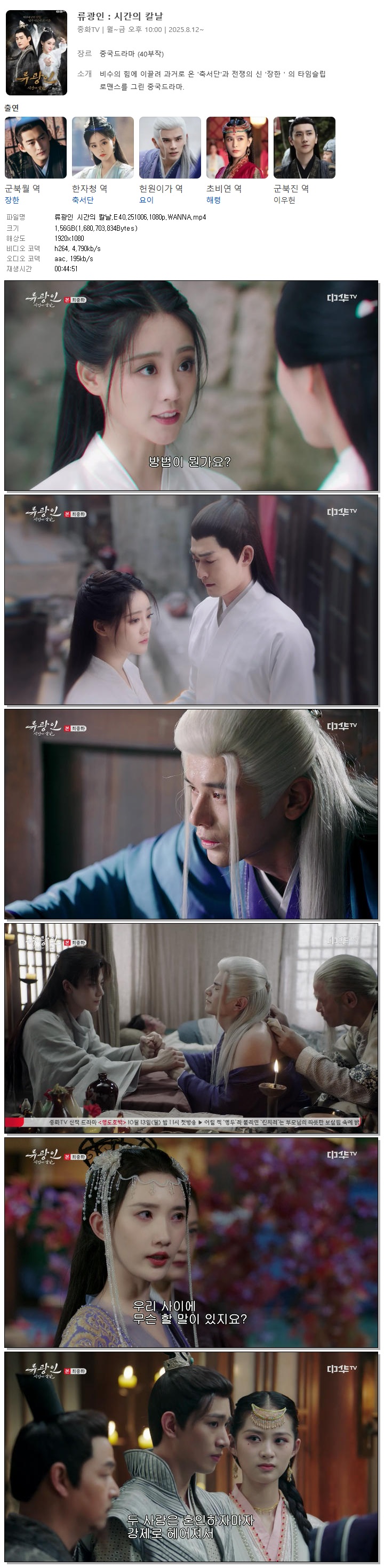 [중화TV] 류광인 시간의 칼날.E40.251006.1080p.WANNA[군북월, 한자청].mp4 1.6 G 00:44:51 1920x1080