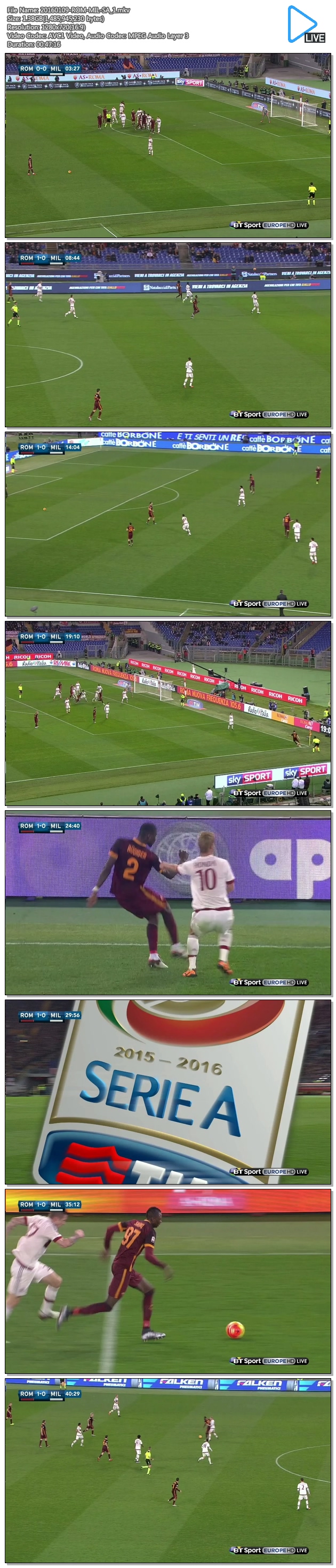 세리에A AC밀란 vs AS로마 160110 [영어해설,고화질,720P] 다시보기 토렌트