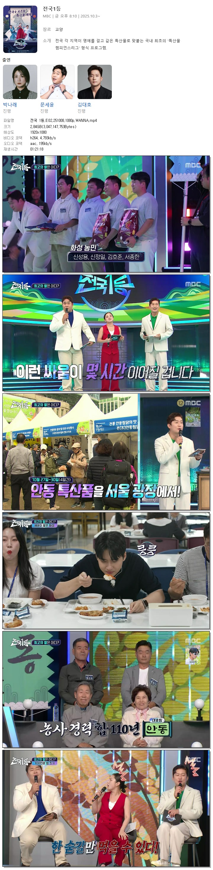 [MBC] 전국 1등.E02.251008.1080p.WANNA[박나래, 문세윤] 다시보기 토렌트